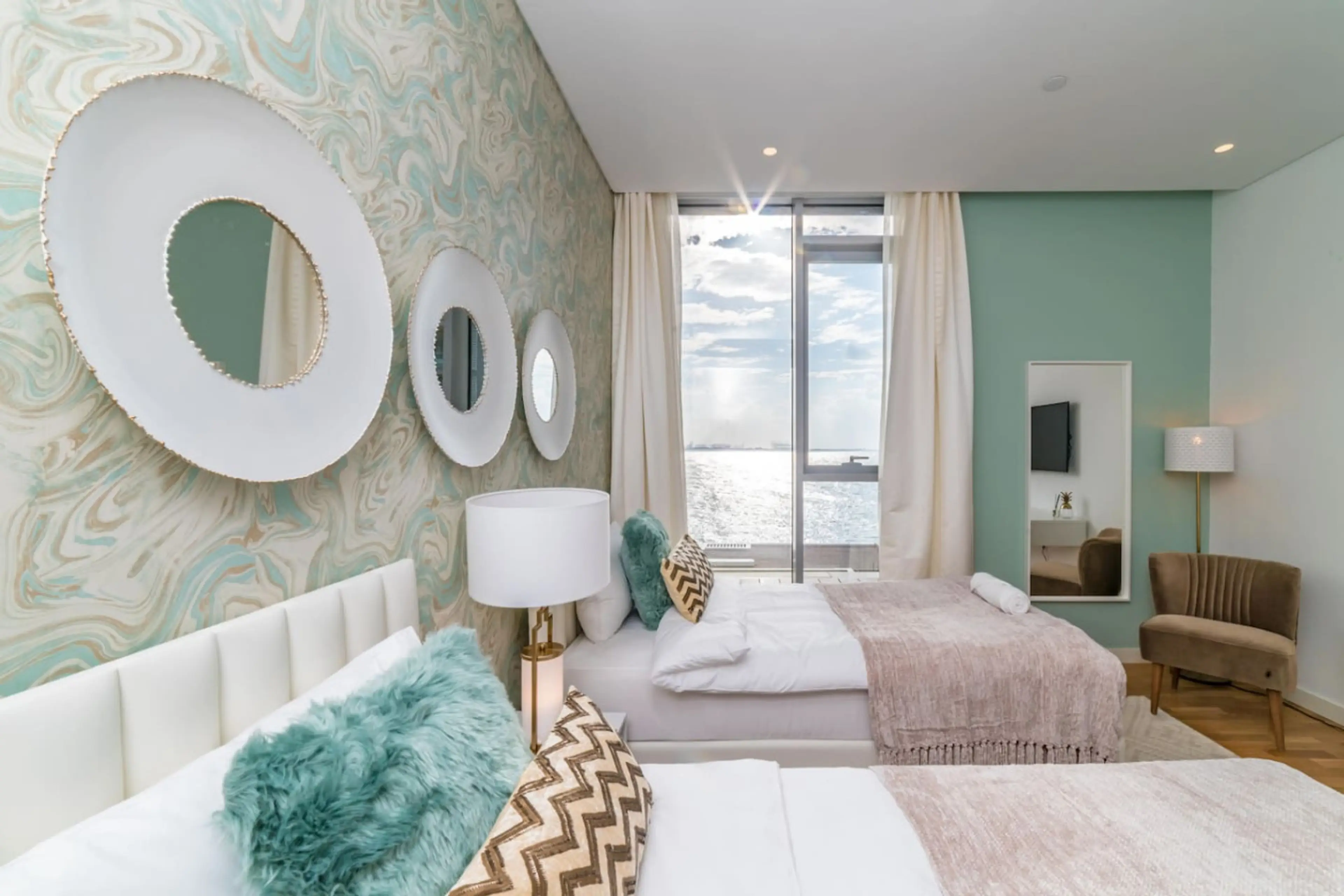 This stunning 2-bedroom apartment offers uninterrupted full sea views from every room, paired with modern furniture, high-end finishes, and a fully equipped kitchen — designed to deliver a true five-star experience. e spacious living area opens onto floor-to-ceiling windows showcasing the sparkling ...