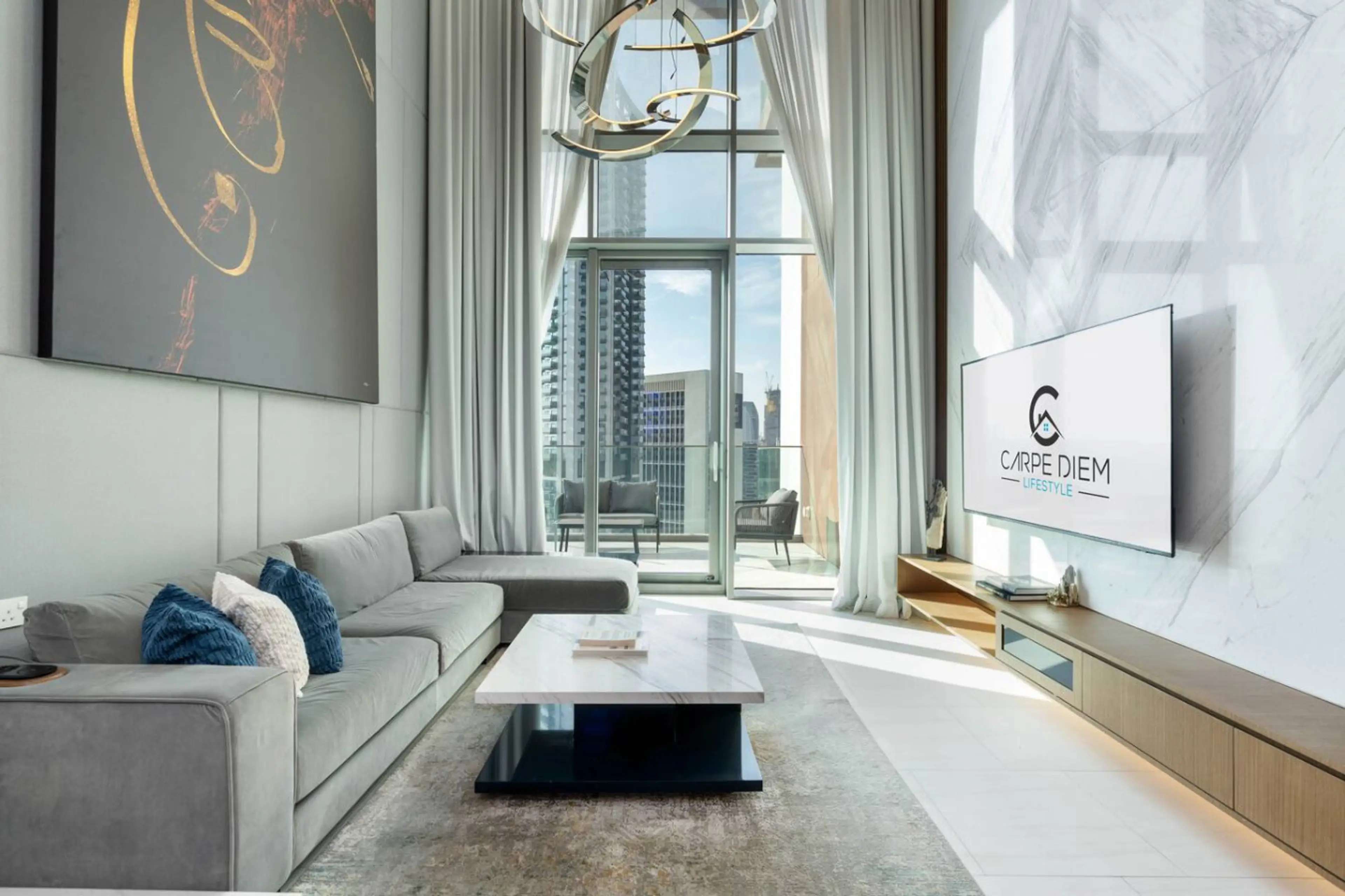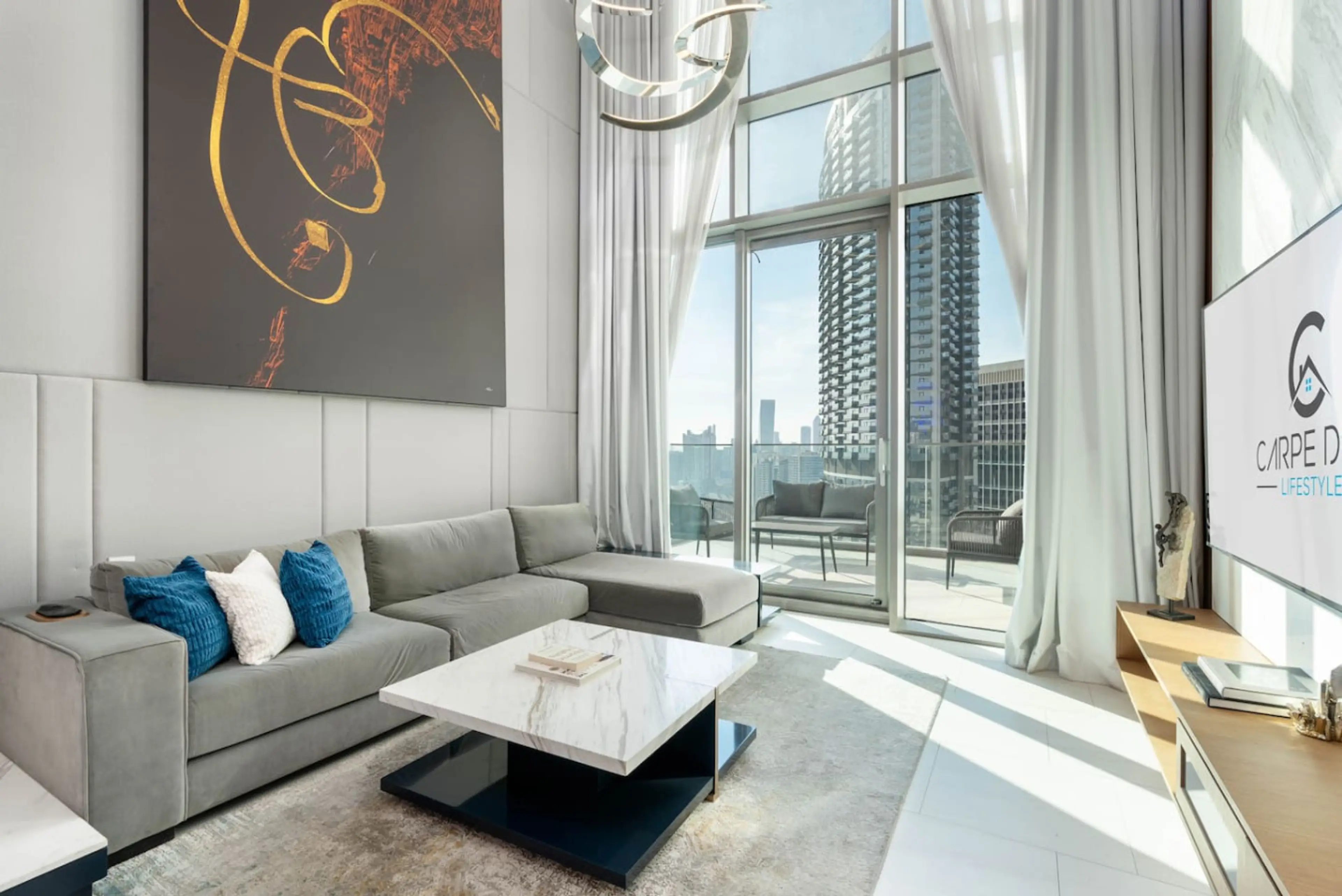 This stunning duplex offers a perfect blend of hotel-level luxury and residential comfort, furnished to Carpe Diem’s signature standards with modern, high-quality pieces and full appliances. The double-height layout creates an airy, contemporary feel, while the floor-to-ceiling windows open onto a b...